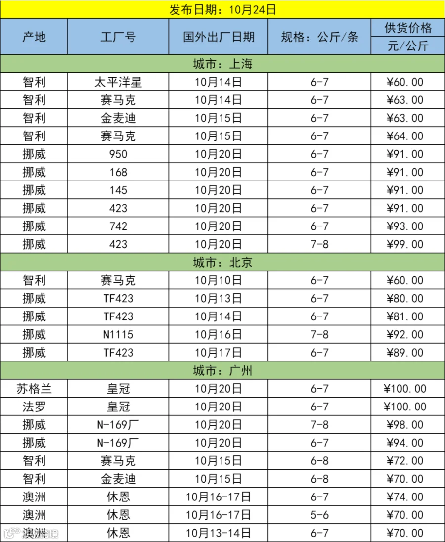 欢迎关注[三文鱼批发行情],每天更新当天市场价格,及时分享市场各大重要资讯