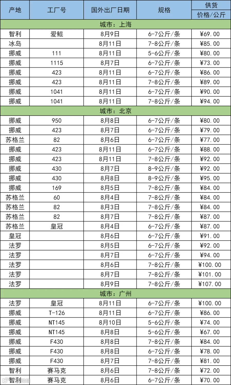 8月14日三文鱼批发行情(上海|北京|广州) 三文鱼批发行情