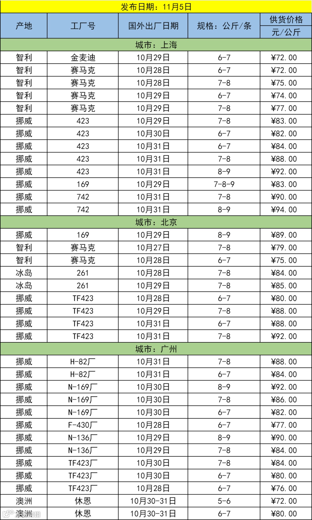 11月5日三文鱼批发行情(上海|北京|广州) 三文鱼批发行情