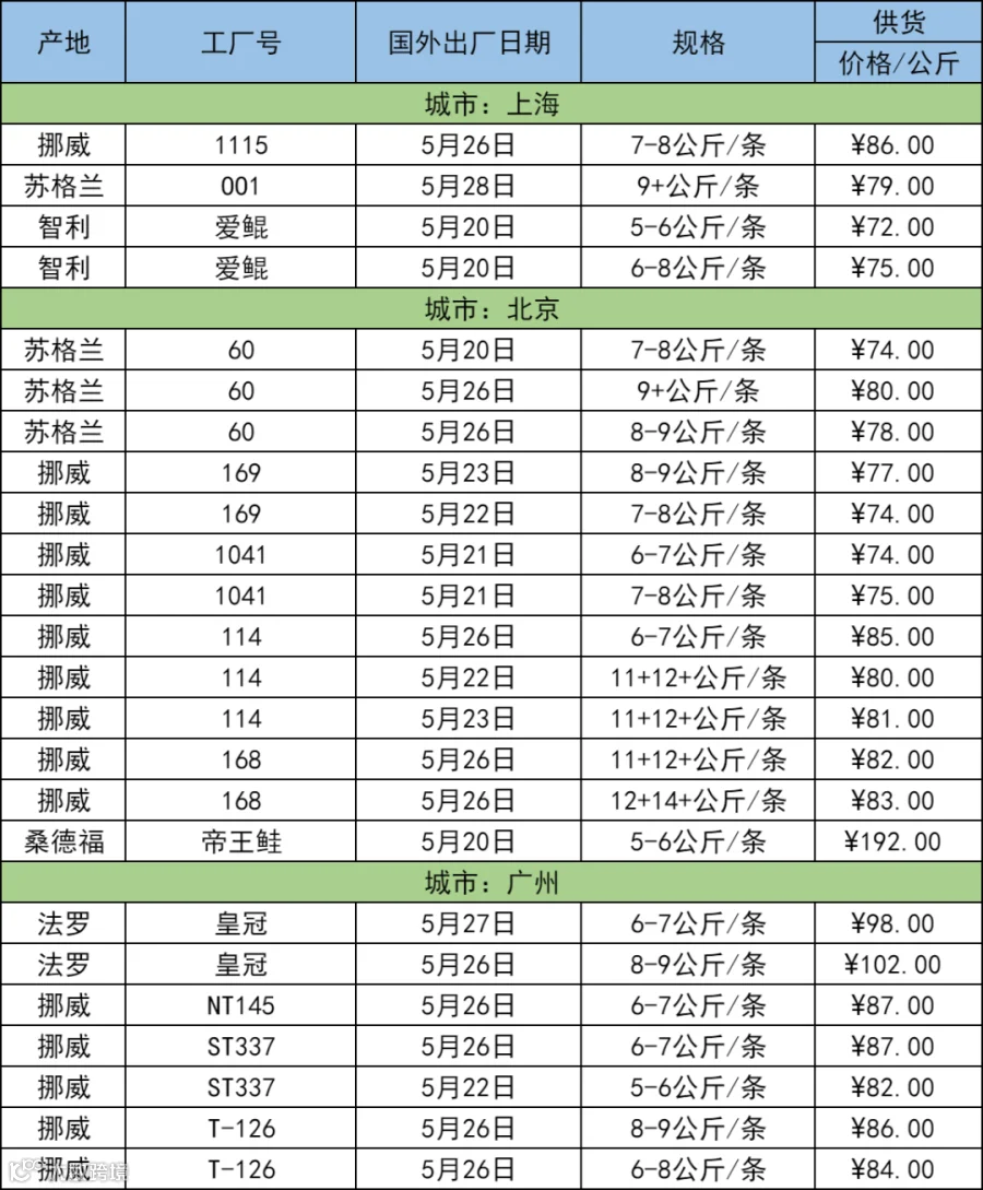 欢迎关注[三文鱼批发行情],每天更新当天市场价格,及时分享市场各大重要资讯