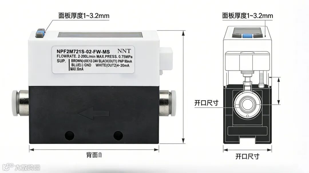 中流量款(NPF2M710/25/50):覆盖 0.1~50L/min 区间,适用于常规气动系统、自动化生产线的流量监测;