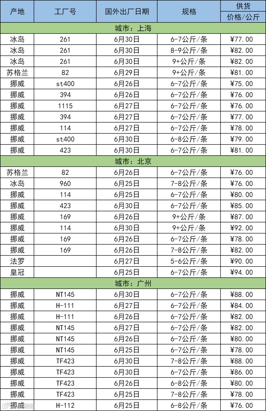 7月3日三文鱼批发行情(上海|北京|广州)