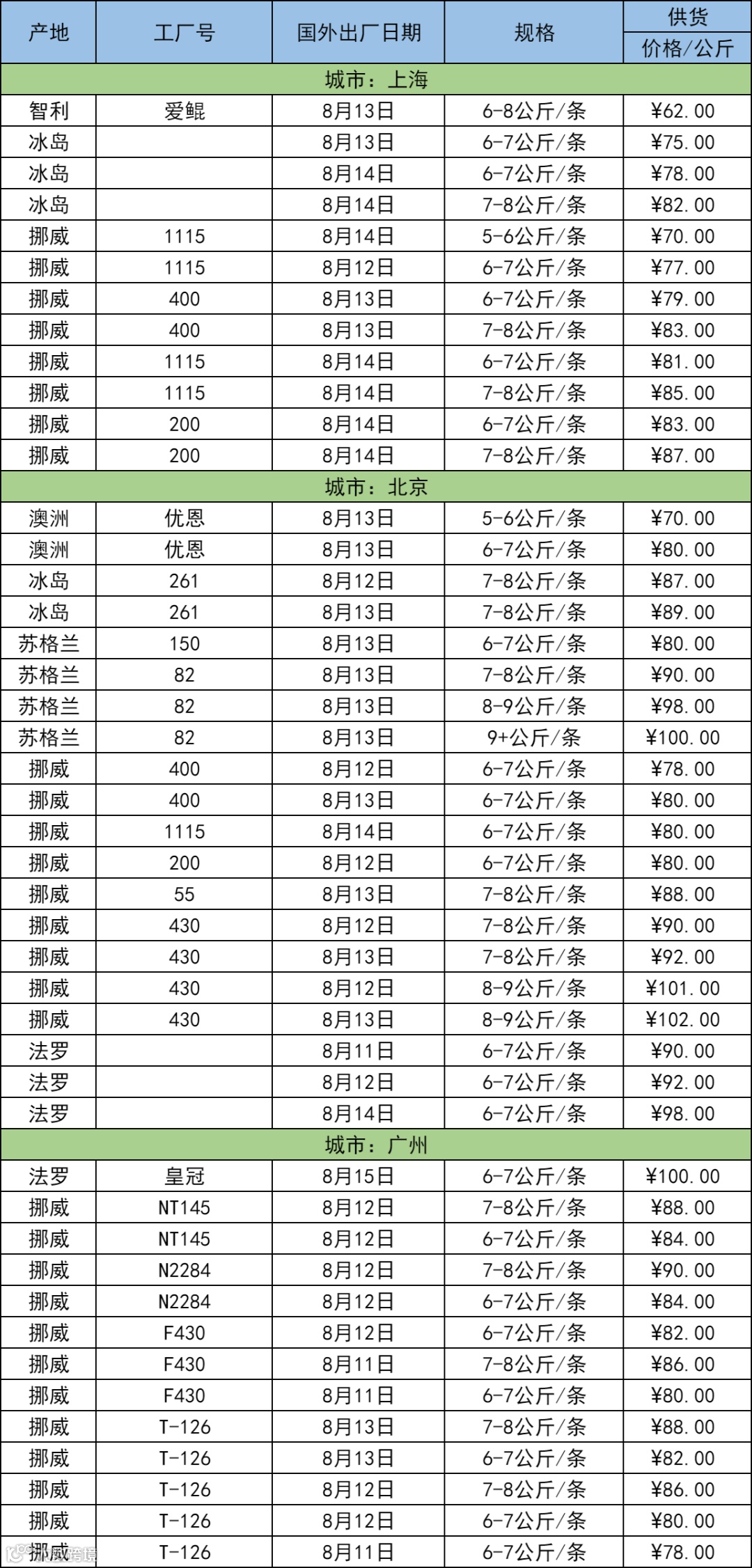 8月18日三文鱼批发行情(上海|北京|广州) 三文鱼批发行情