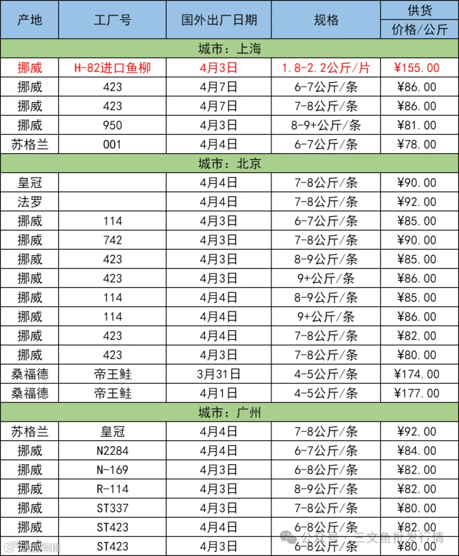 4月9日三文鱼批发行情(上海|北京|广州)