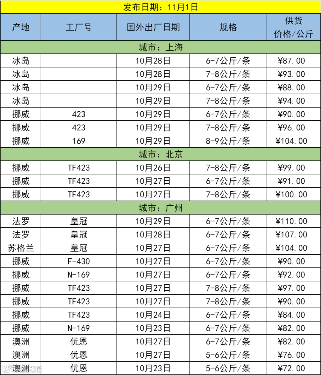 欢迎关注[三文鱼批发行情],每天更新当天市场价格,及时分享市场各大重要资讯