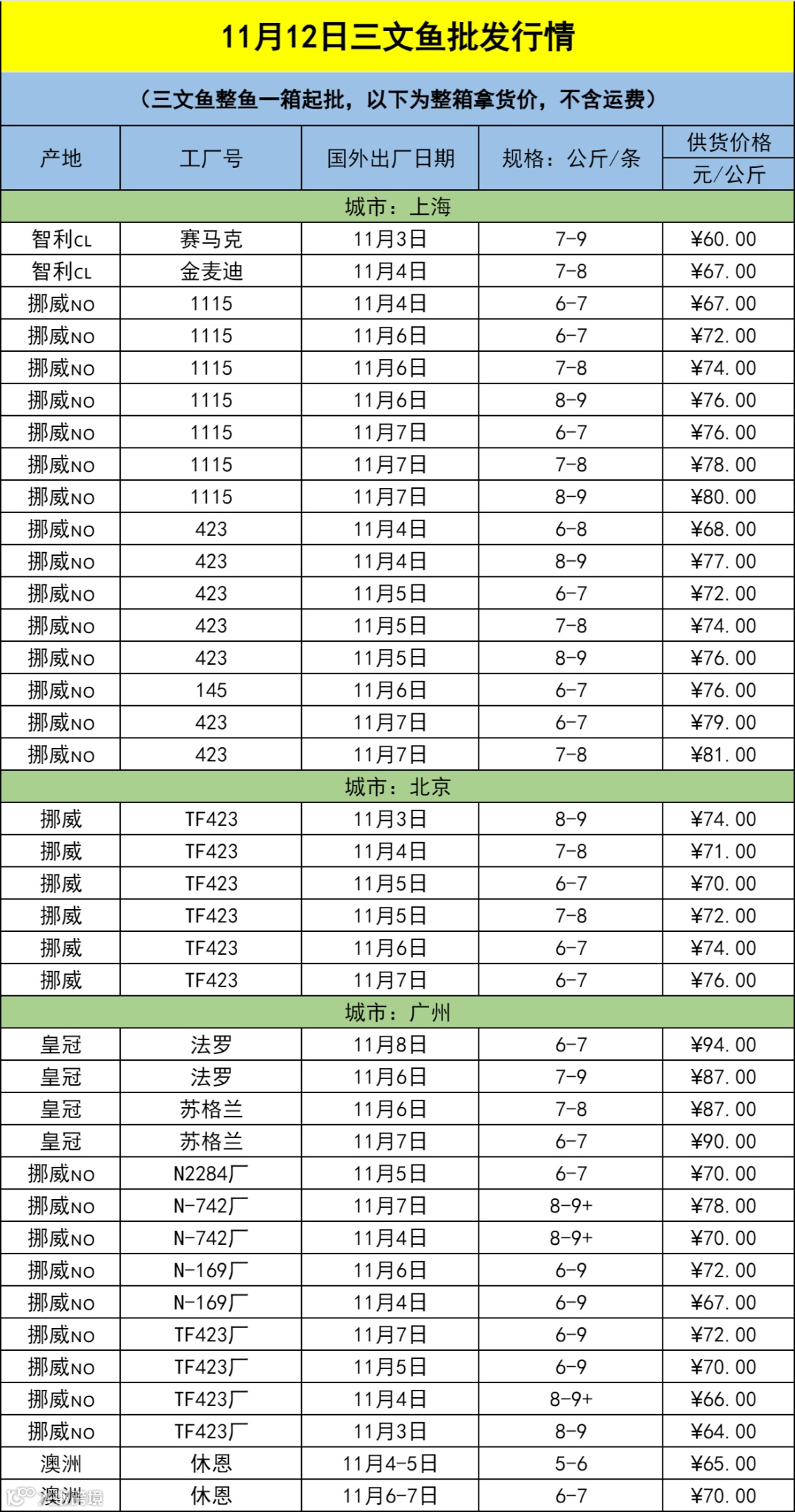 11月12日三文鱼批发行情(上海|北京|广州) 三文鱼批发行情