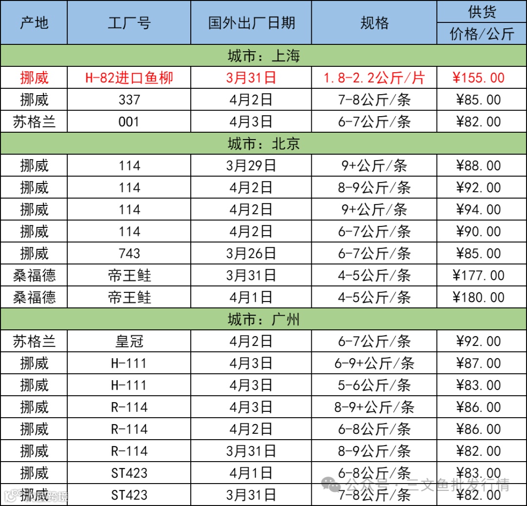 4月6日三文鱼批发行情(上海|北京|广州) 三文鱼批发行情