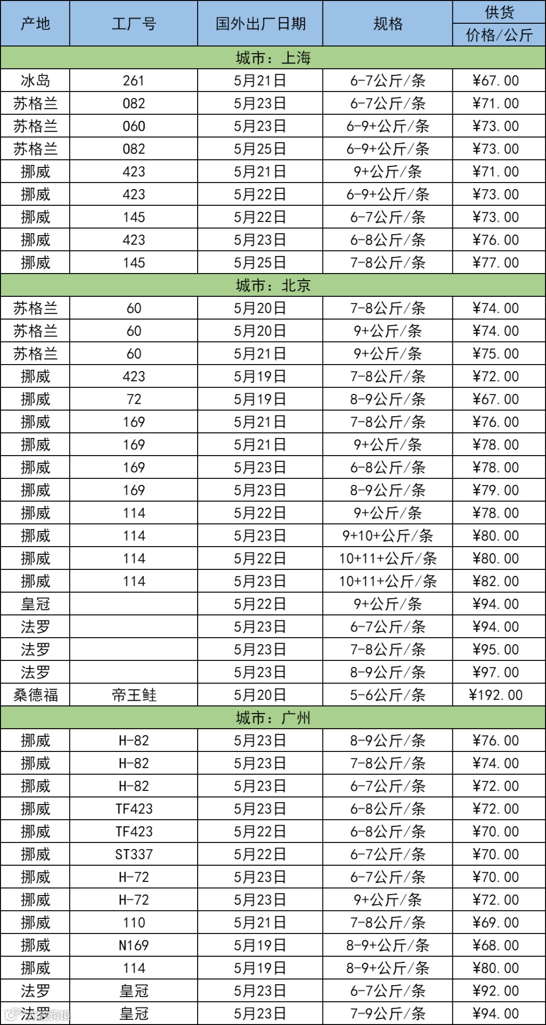 5月28日三文鱼批发行情(上海|北京|广州)