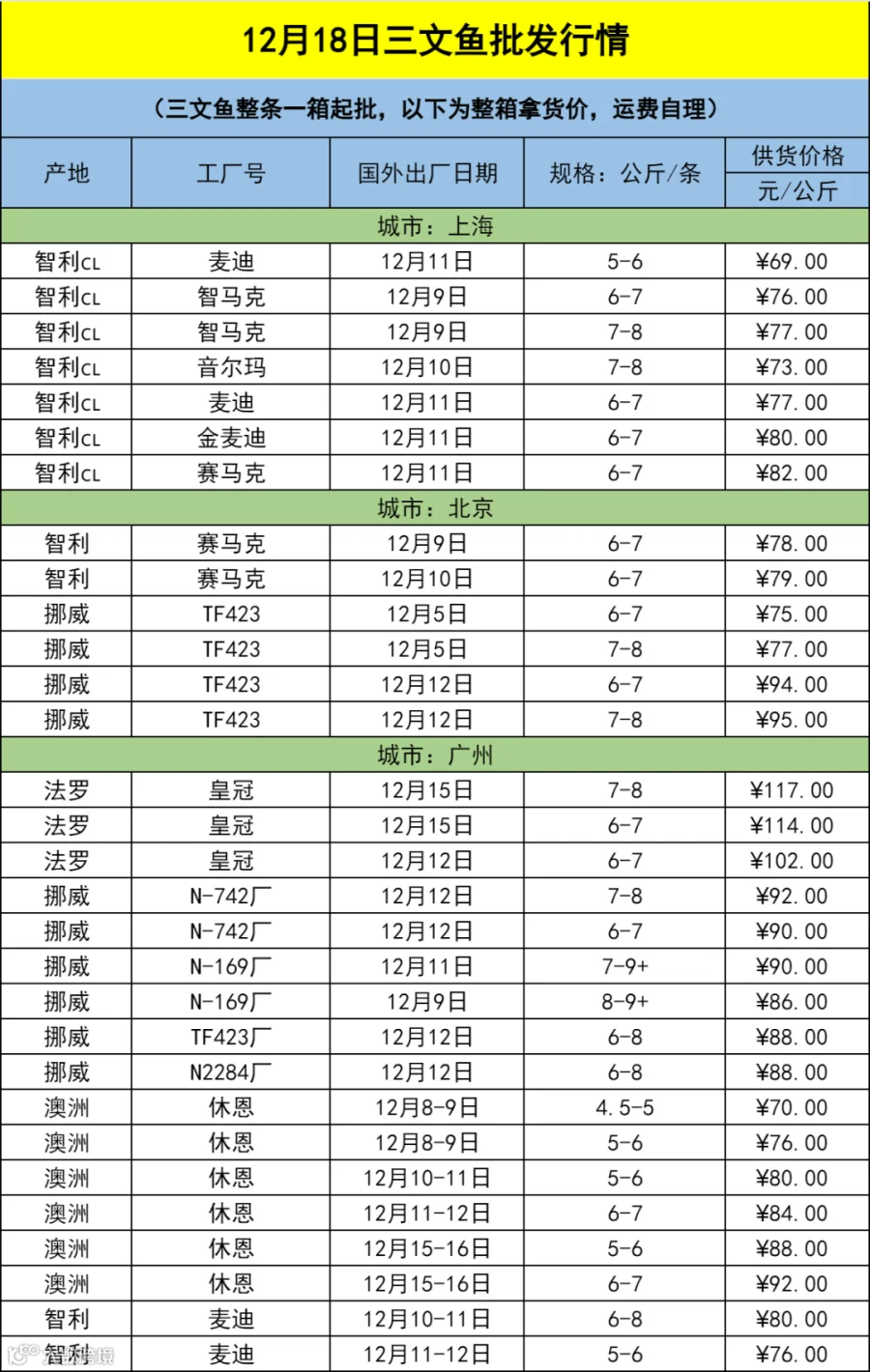 12月18日三文鱼批发行情(上海|北京|广州)
