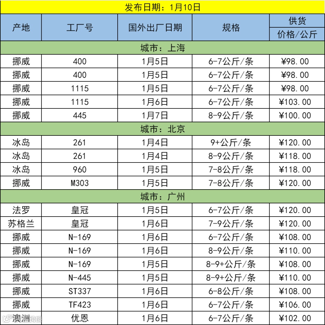 1月10日三文鱼批发行情(上海|北京|广州) 三文鱼批发行情