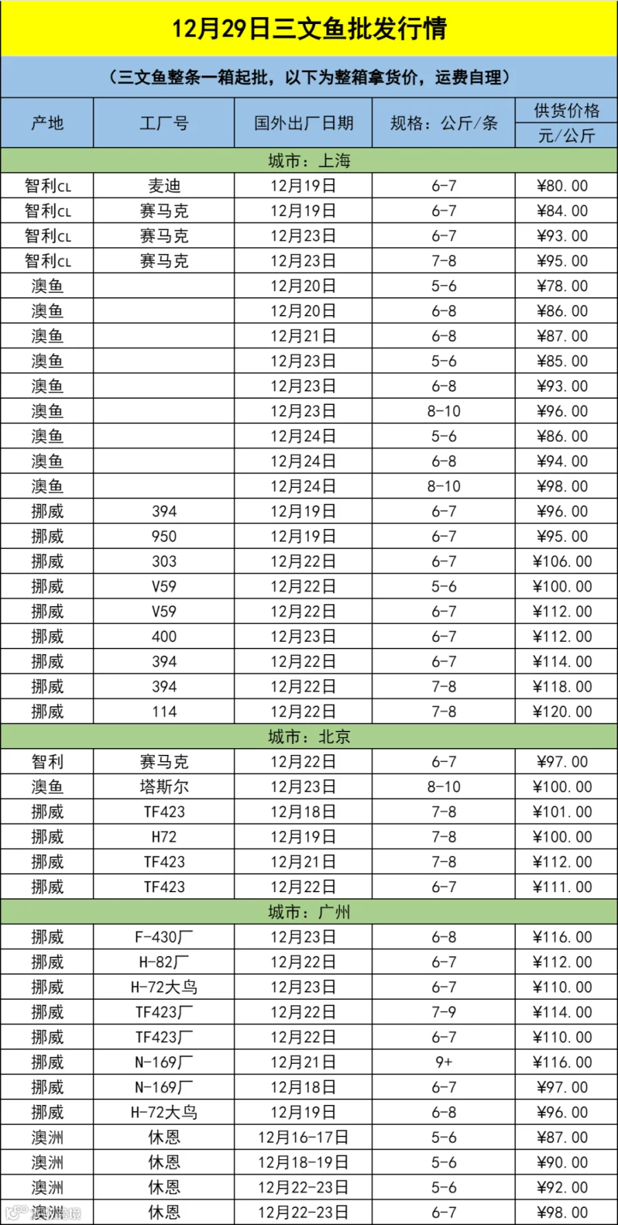12月29日三文鱼批发行情(上海|北京|广州) 三文鱼批发行情