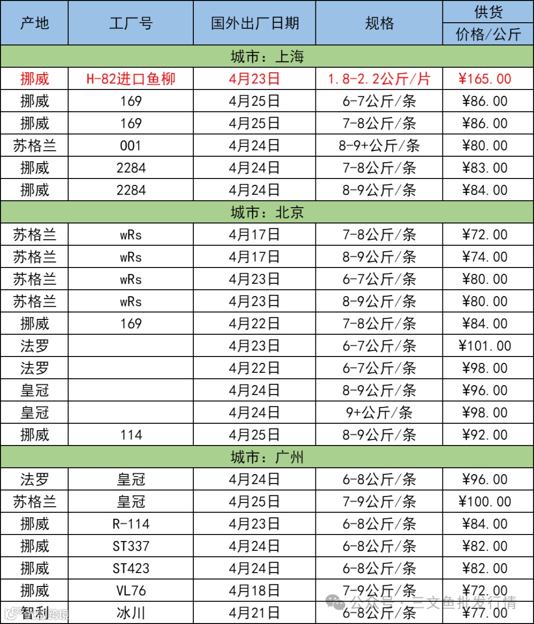 4月29日三文鱼批发行情(上海|北京|广州)
