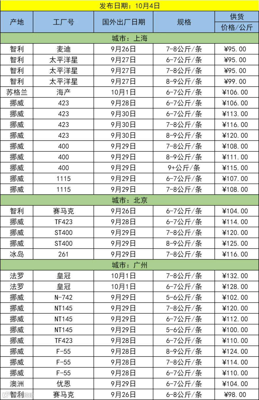 10月4日三文鱼批发行情(上海|北京|广州) 三文鱼批发行情