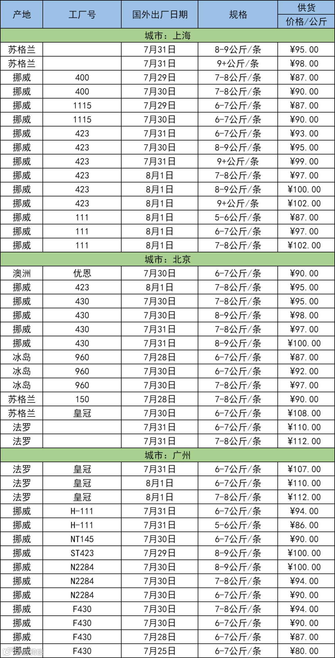 8月4日三文鱼批发行情(上海|北京|广州) 三文鱼批发行情