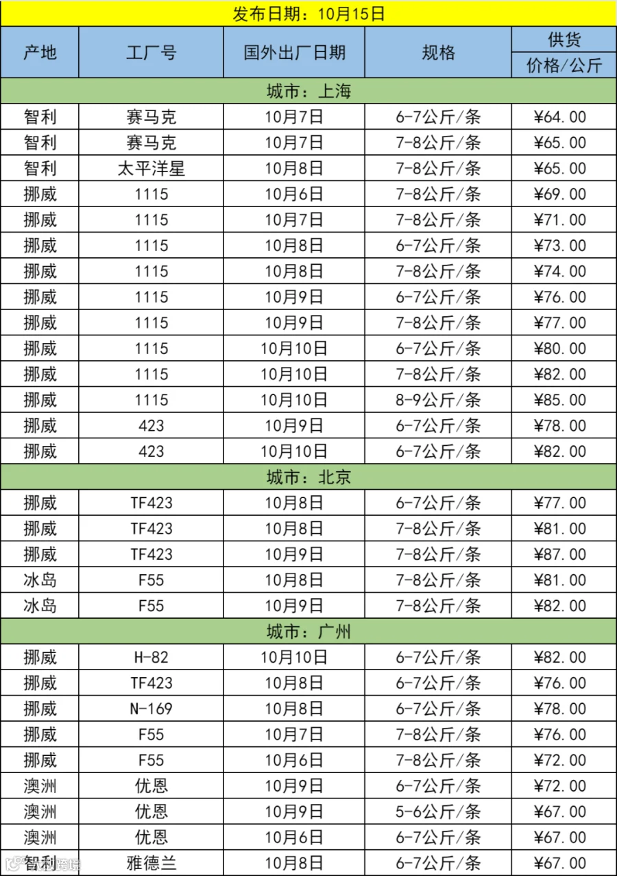 10月15日三文鱼批发行情(上海|北京|广州) 三文鱼批发行情