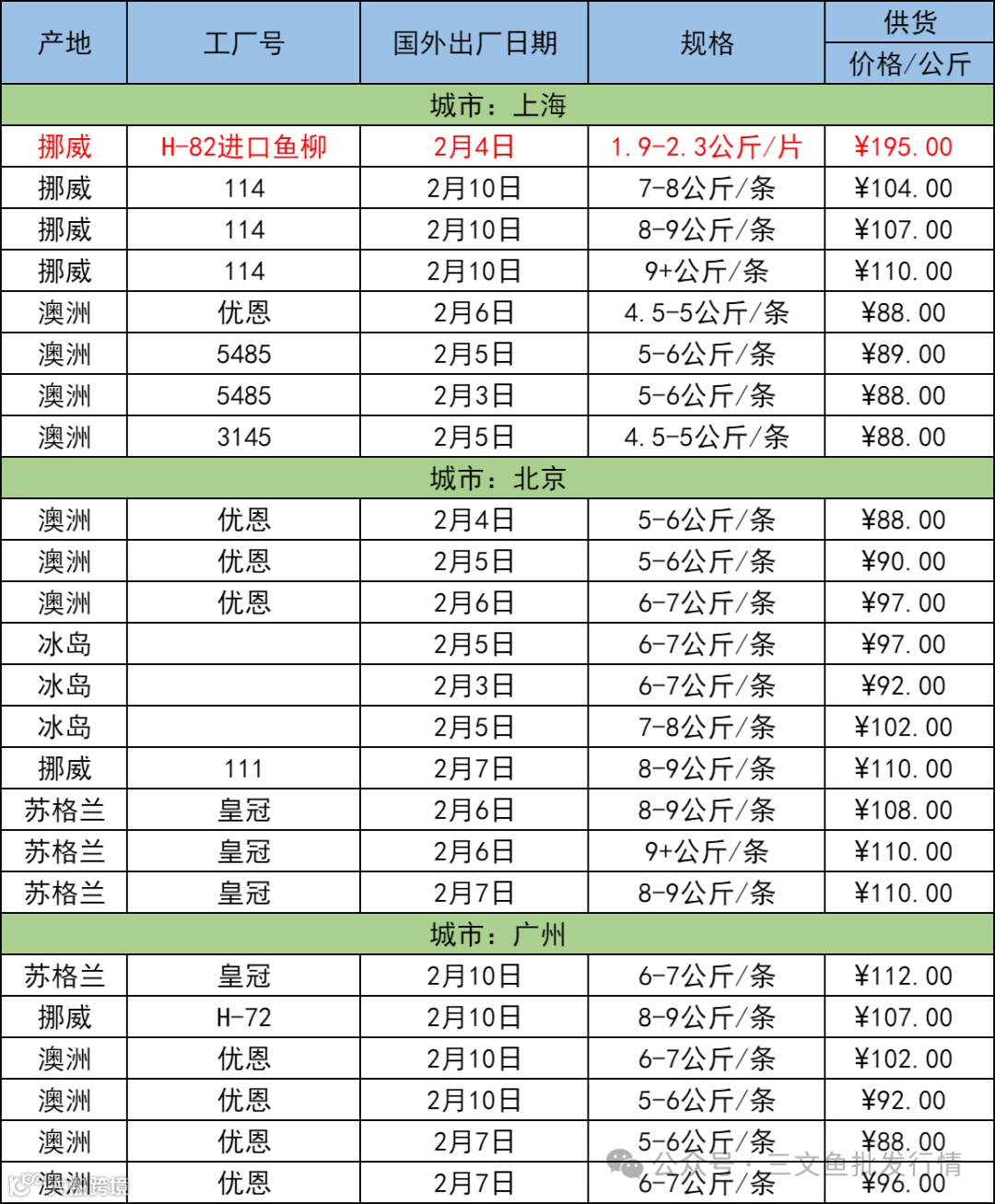 2月13日三文鱼批发行情(上海|北京|广州) 三文鱼批发行情