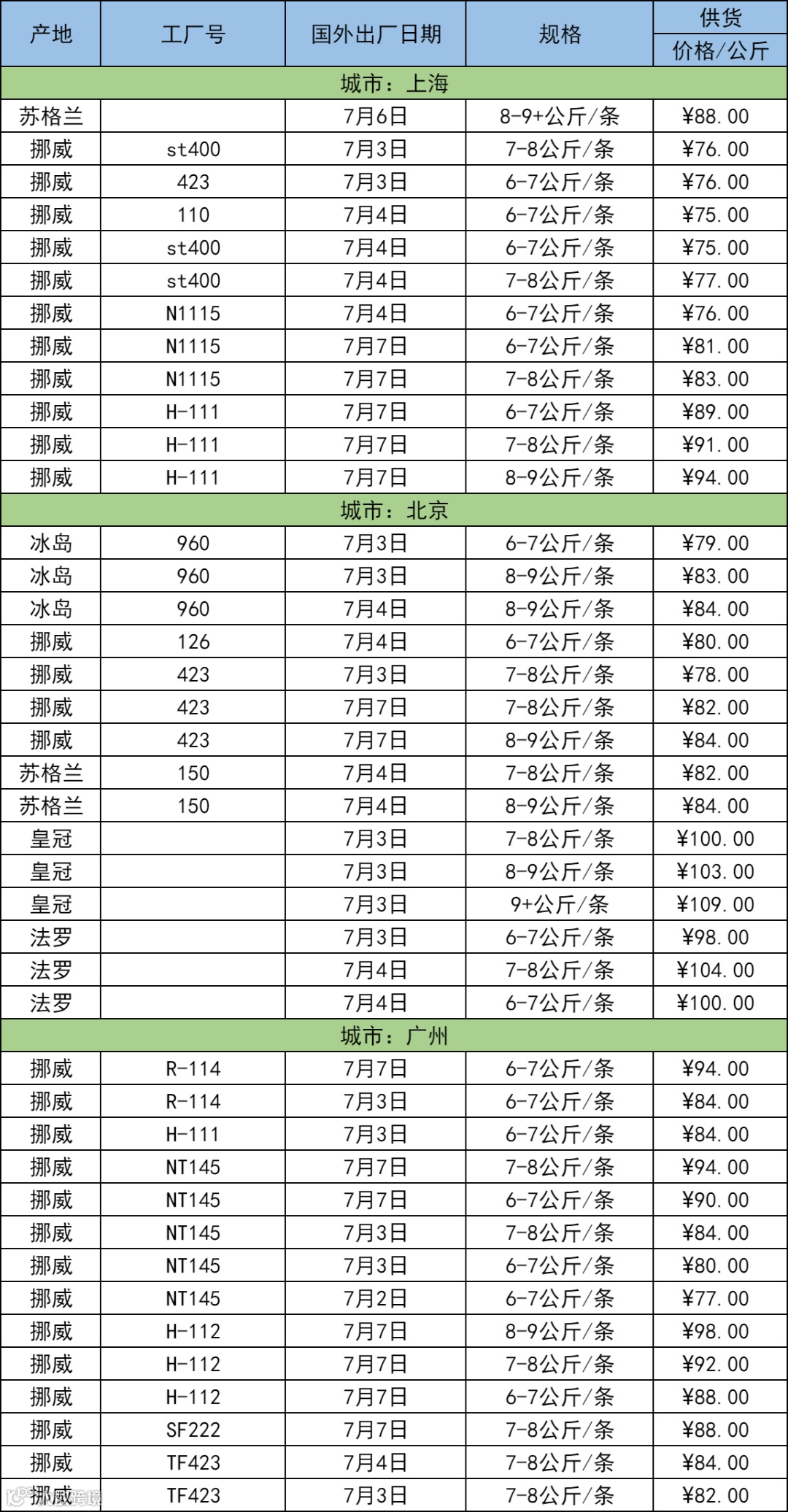 7月10日三文鱼批发行情(上海|北京|广州) 三文鱼批发行情