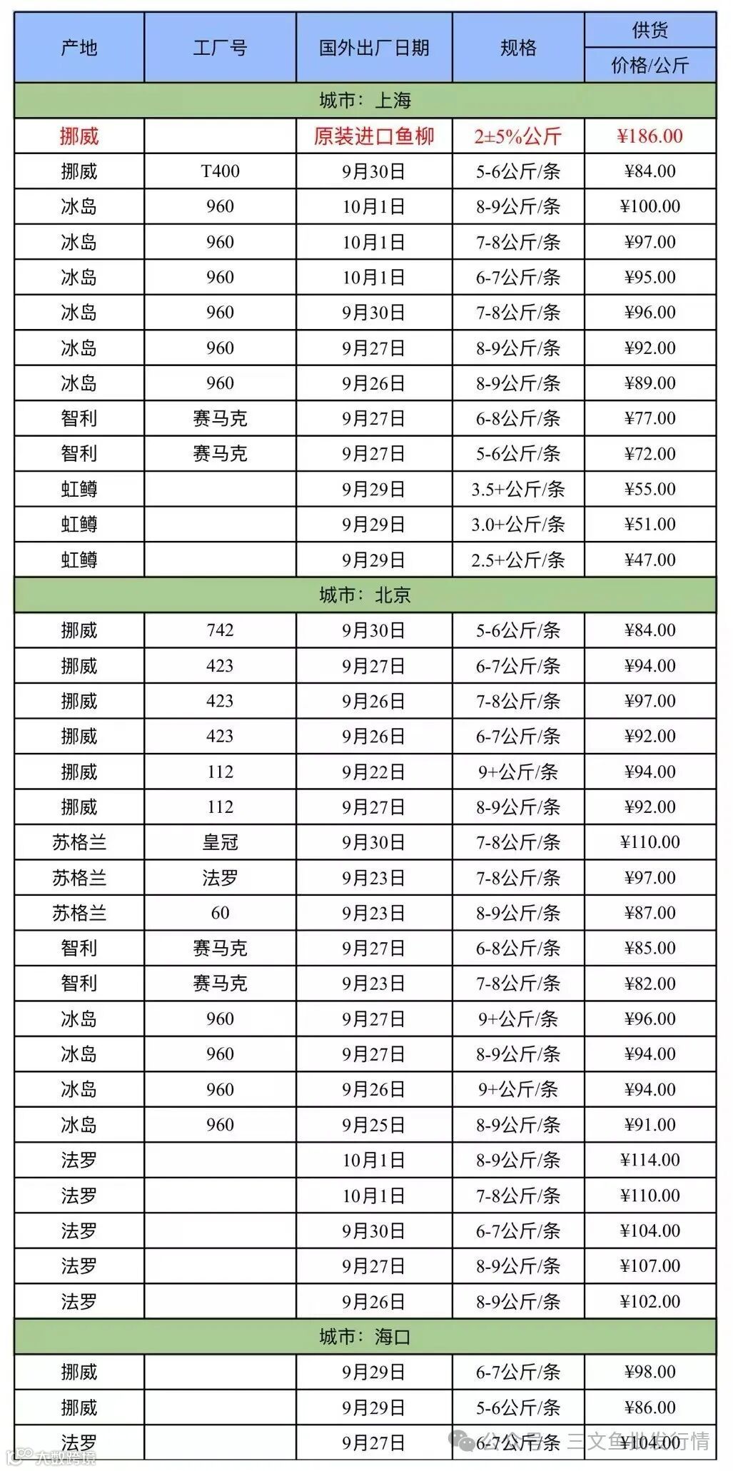 10月9日三文鱼批发行情(上海|北京|海口) 三文鱼批发行情