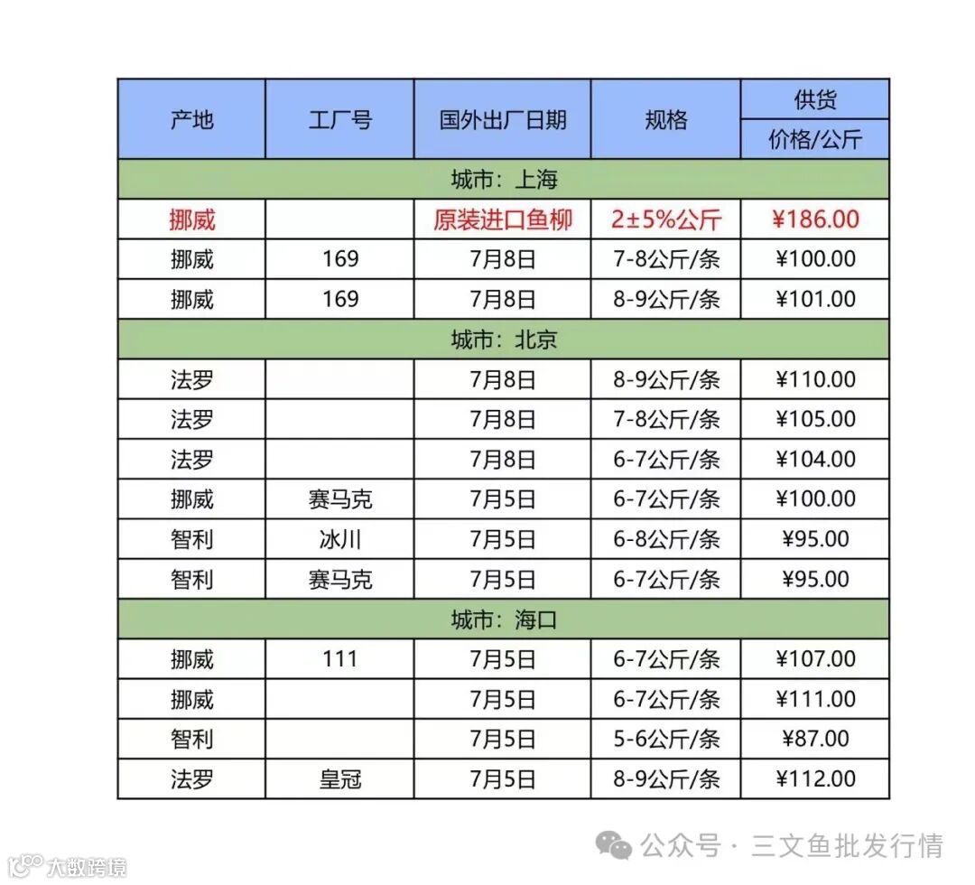 6、欢迎关注[三文鱼批发行情],每天更新当天市场价格,及时分享市场各大重要资讯。