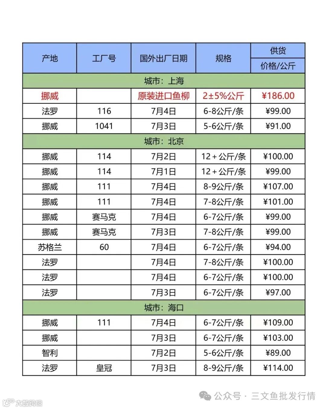 6、欢迎关注[三文鱼批发行情],每天更新当天市场价格,及时分享市场各大重要资讯。