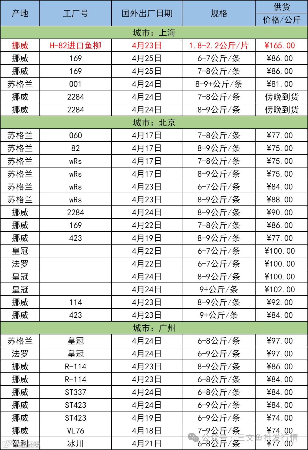 4月28日三文鱼批发行情(上海|北京|广州) 三文鱼批发行情