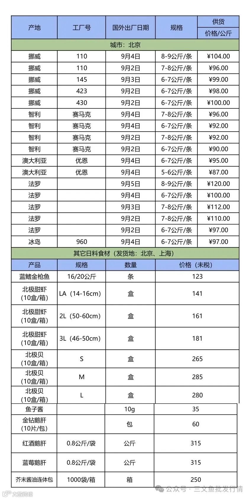 9月9日三文鱼批发行情(北京) 三文鱼批发行情