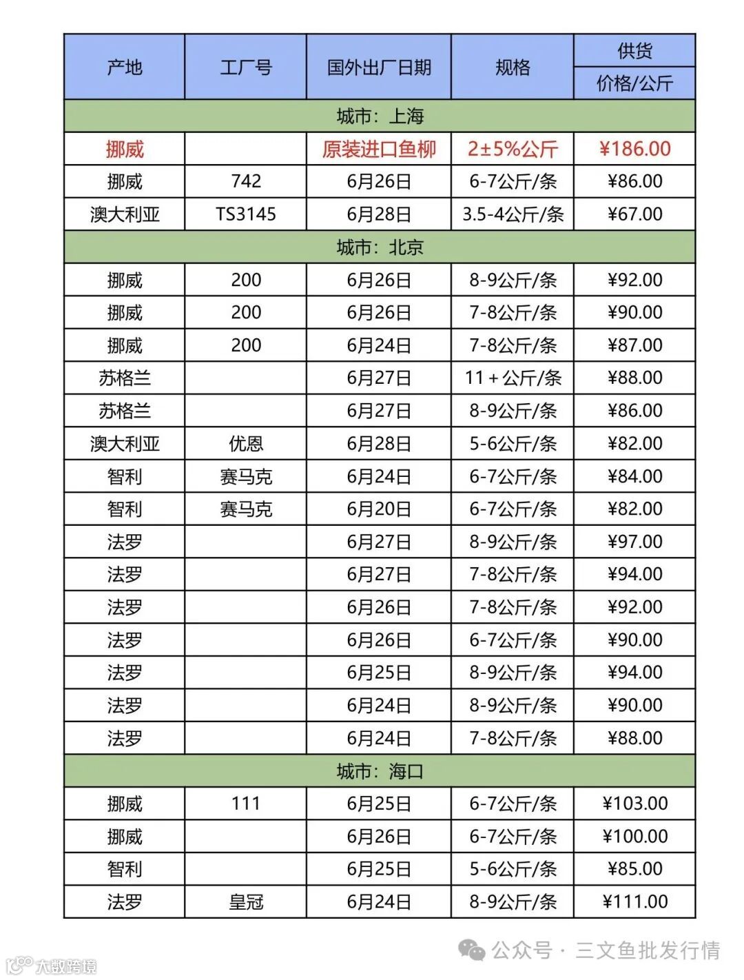 6、欢迎关注[三文鱼批发行情],每天更新当天市场价格,及时分享市场各大重要资讯。