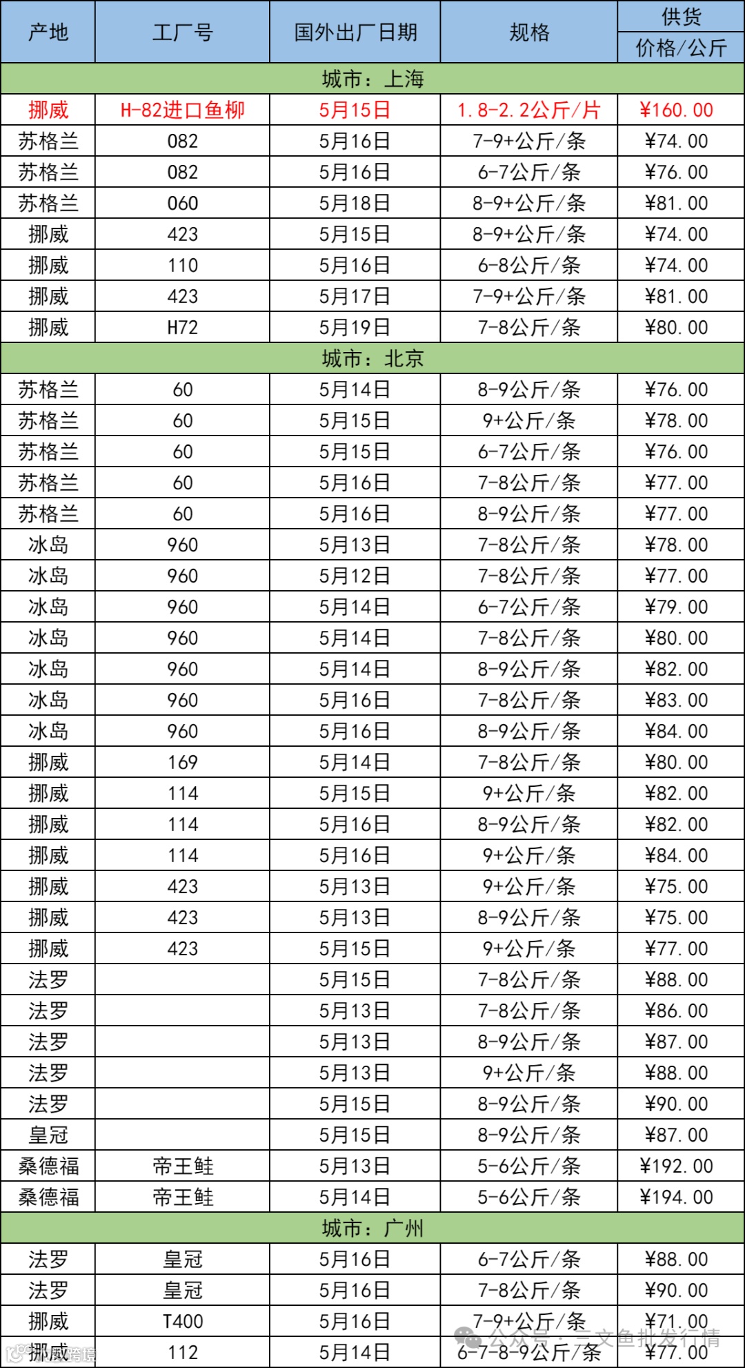 5月21日三文鱼批发行情(上海|北京|广州)