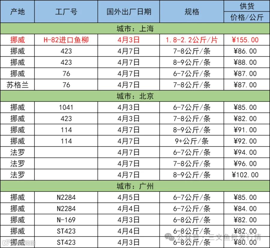 4月10日三文鱼批发行情(上海|北京|广州)