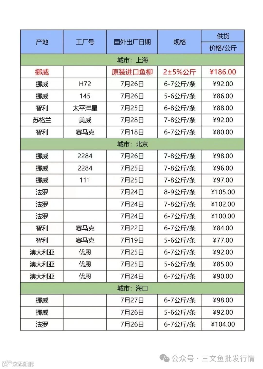 6、欢迎关注[三文鱼批发行情],每天更新当天市场价格,及时分享市场各大重要资讯。