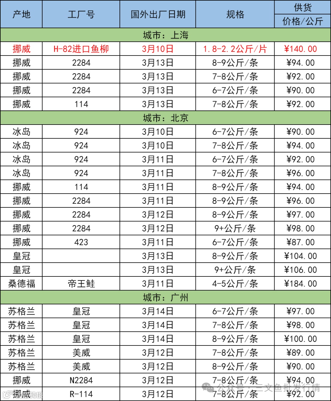 欢迎关注[三文鱼批发行情],每天更新当天市场价格,及时分享市场各大重要资讯