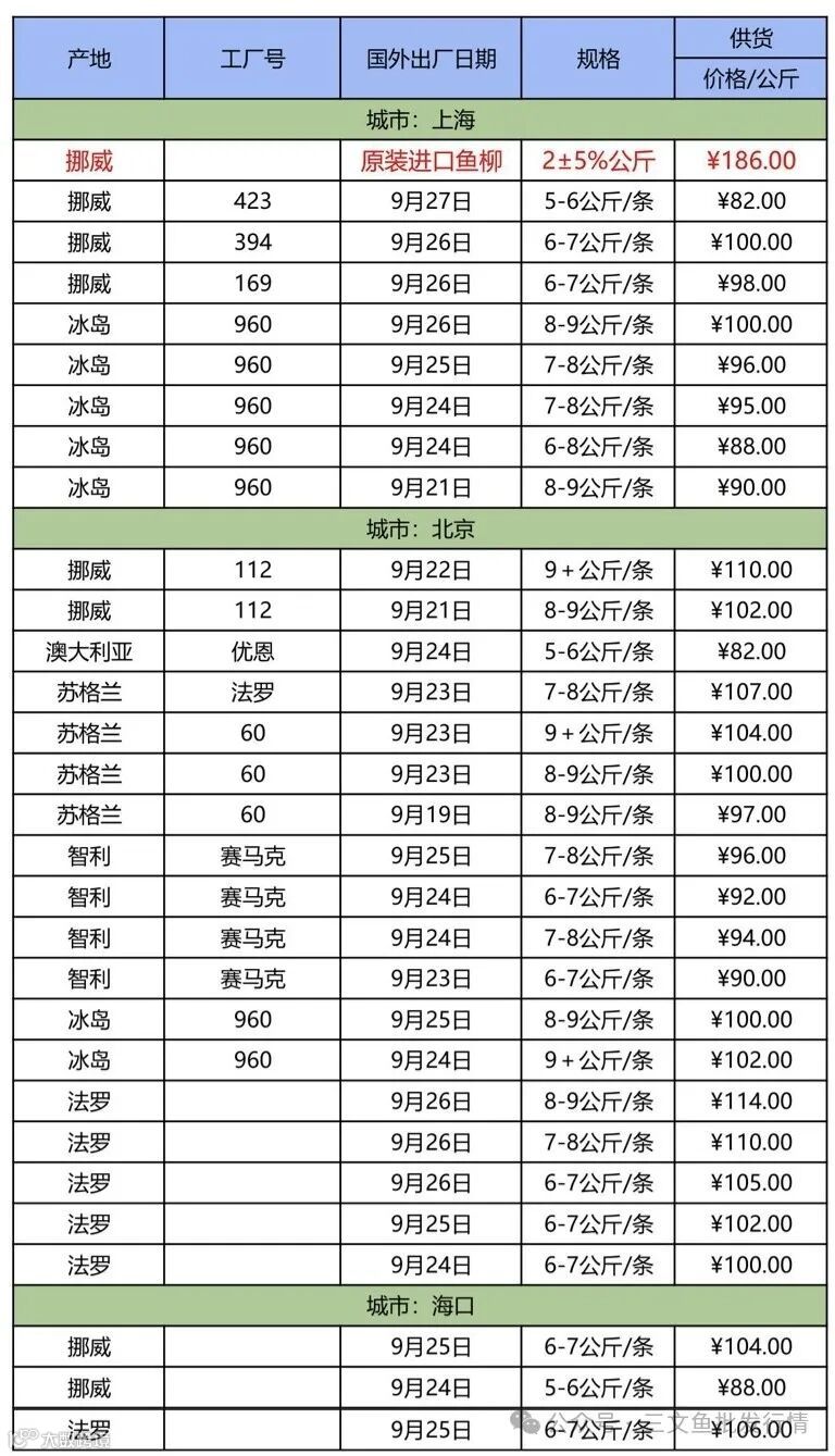 9月30日三文鱼批发行情(上海|北京|海口) 三文鱼批发行情