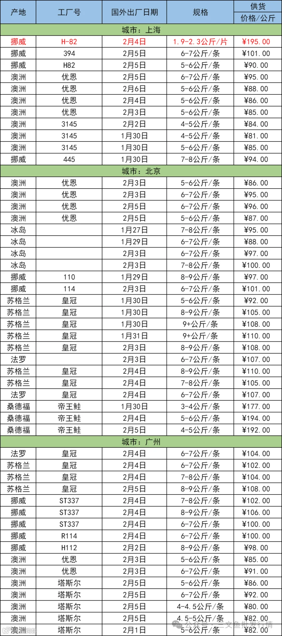 2月9日三文鱼批发行情(上海|北京|广州) 三文鱼批发行情