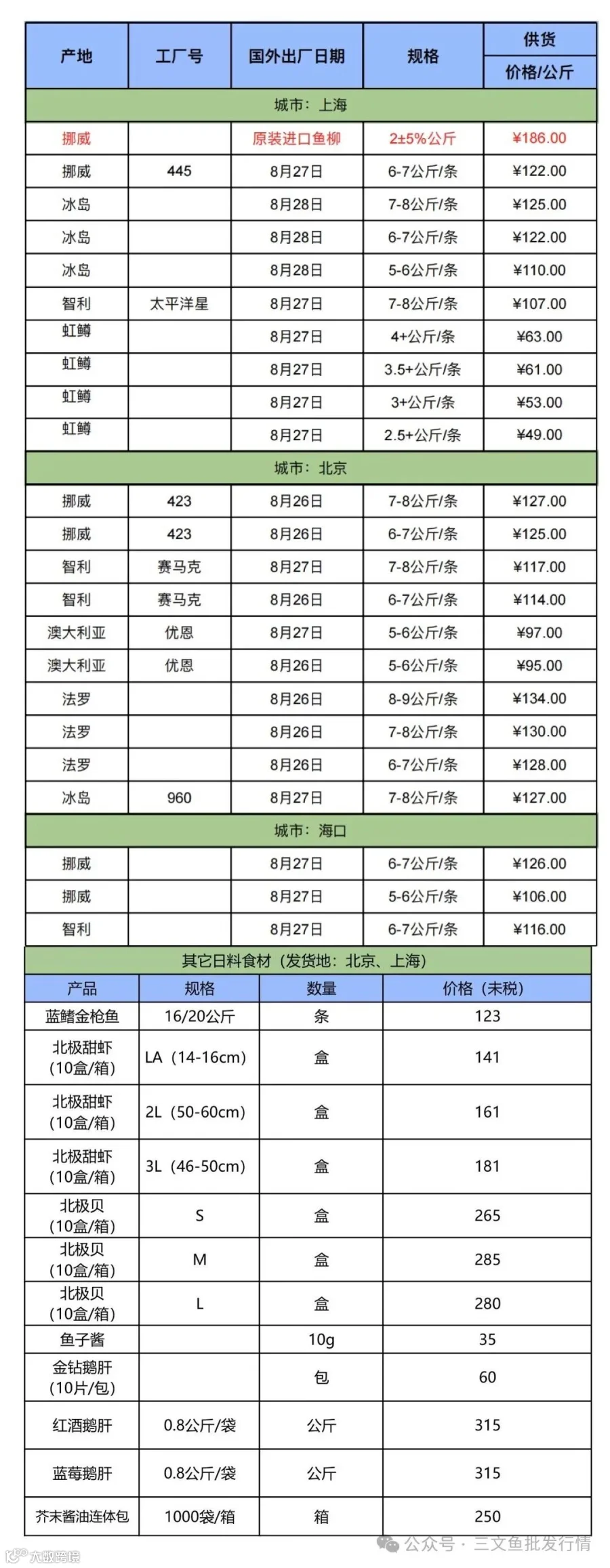 7、欢迎关注[三文鱼批发行情],每天更新当天市场价格,及时分享市场各大重要资讯。