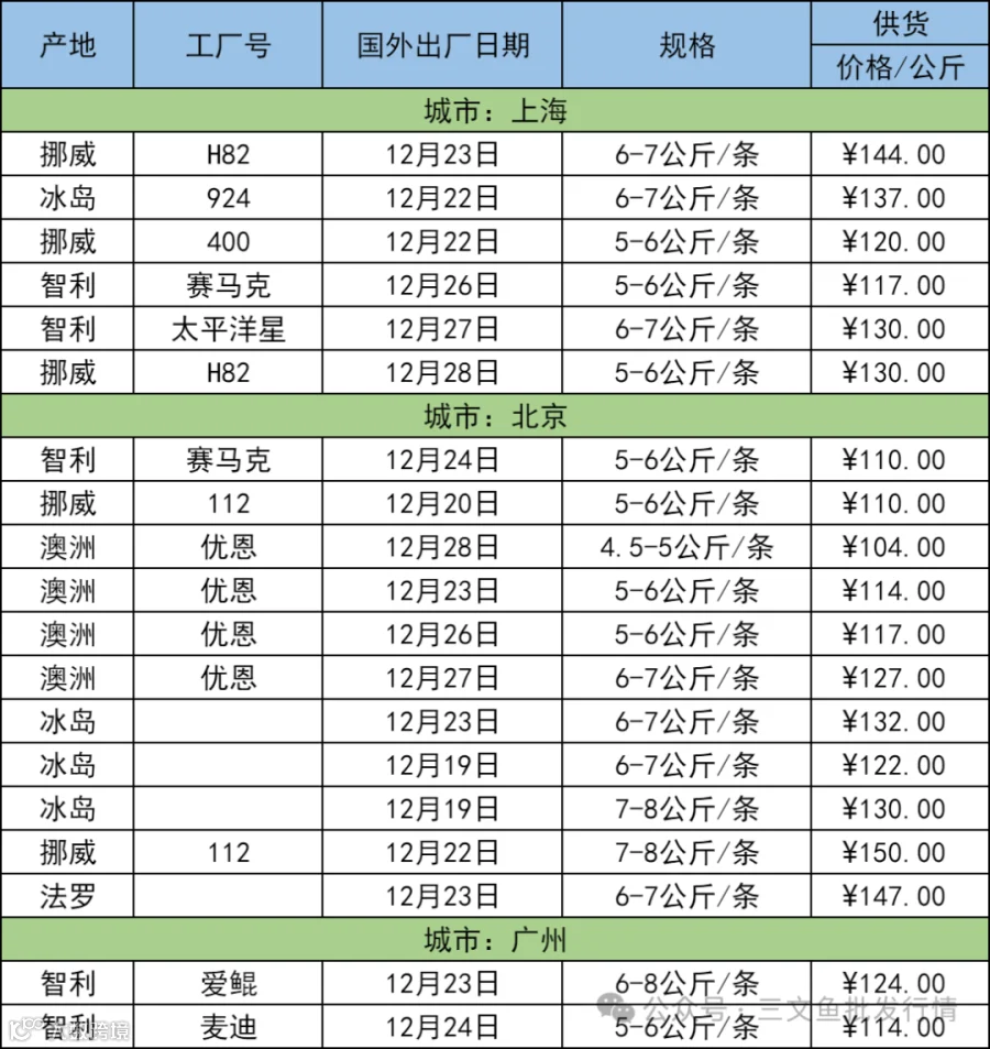 欢迎关注[三文鱼批发行情],每天更新当天市场价格,及时分享市场各大重要资讯