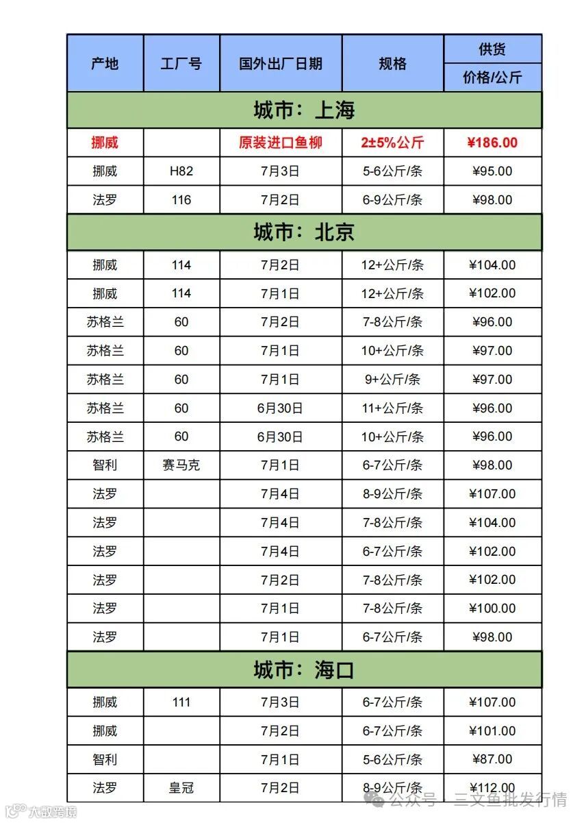 6、欢迎关注[三文鱼批发行情],每天更新当天市场价格,及时分享市场各大重要资讯。