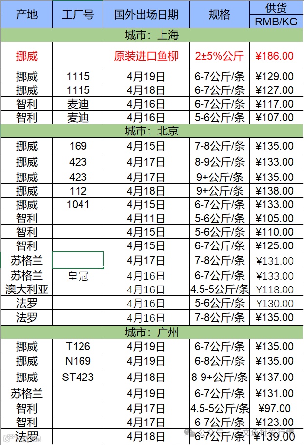 4月23日三文鱼批发行情(上海|广州|北京)