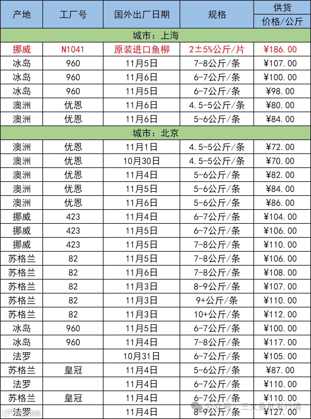 11月10日三文鱼批发行情(上海|北京) 三文鱼批发行情
