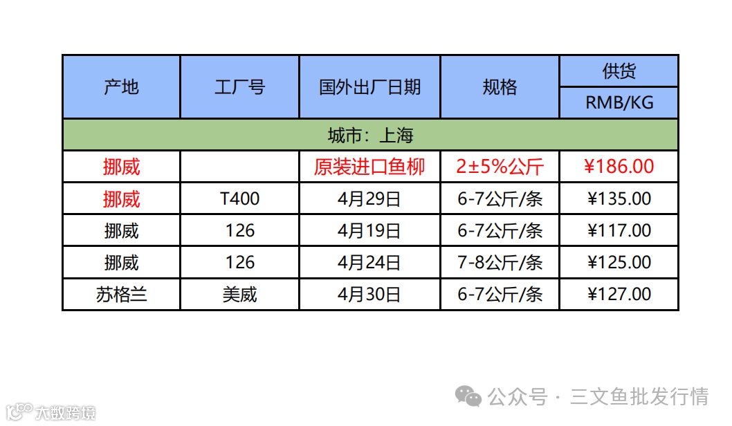 三文鱼批发行情 以每日三文鱼批发行情为基础服务,并将内容逐步拓展至更系统的行业信息:市场趋势、产品解析、供应链洞察及行业活动等。期待以真实数据为依据、以专业视角为导向, 助力三文鱼产业者,看见更远的方向。