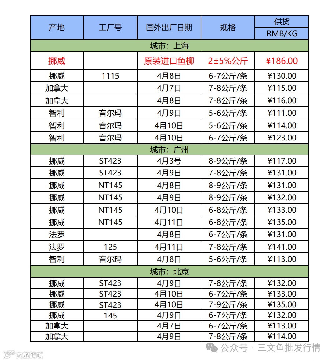 4月15日三文鱼批发行情(上海|广州|北京) 三文鱼批发行情