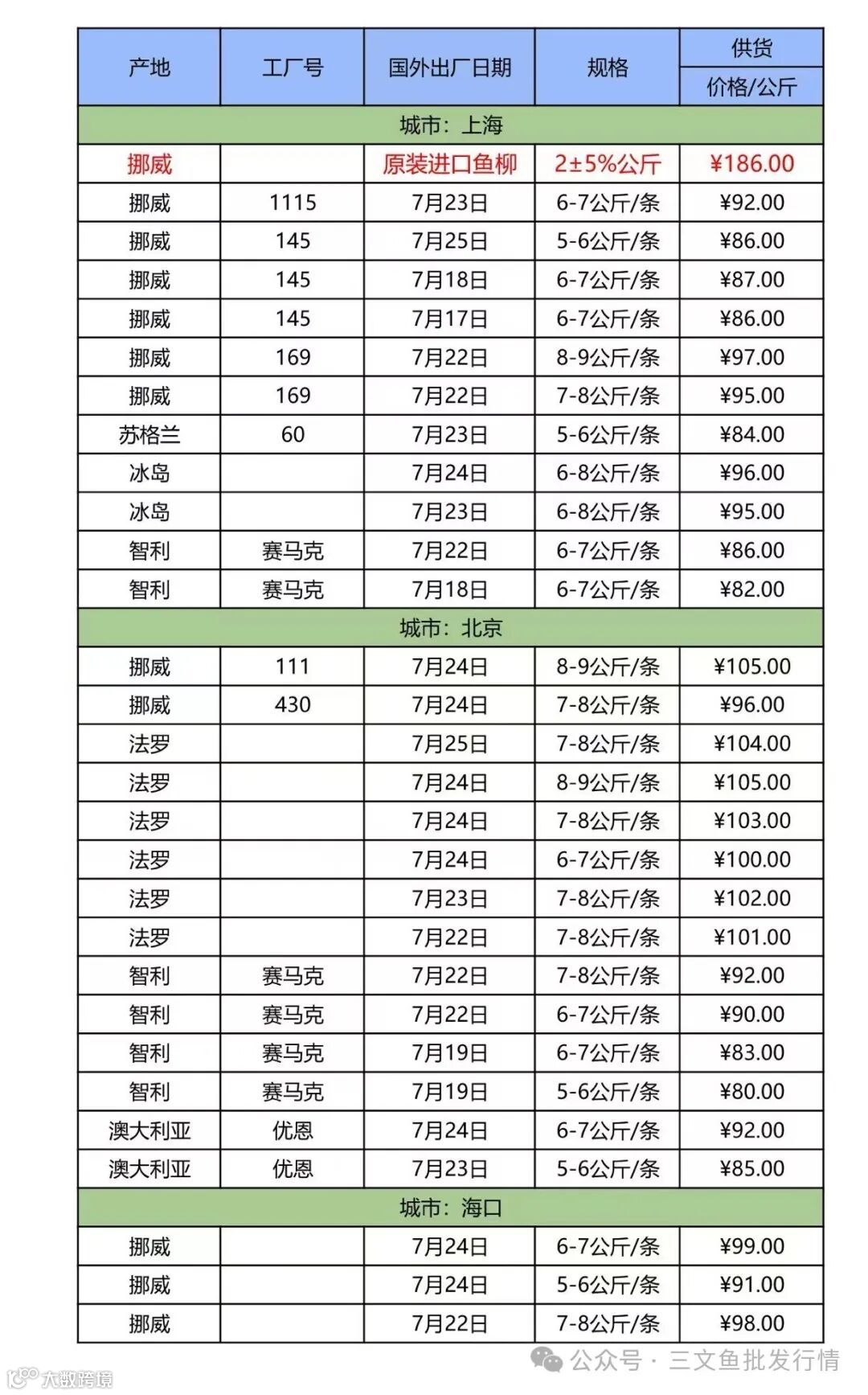 6、欢迎关注[三文鱼批发行情],每天更新当天市场价格,及时分享市场各大重要资讯。