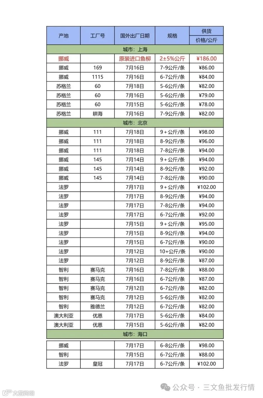 6、欢迎关注[三文鱼批发行情],每天更新当天市场价格,及时分享市场各大重要资讯。