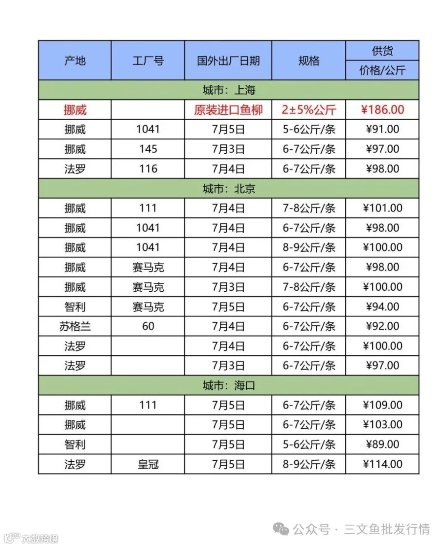 6、欢迎关注[三文鱼批发行情],每天更新当天市场价格,及时分享市场各大重要资讯。