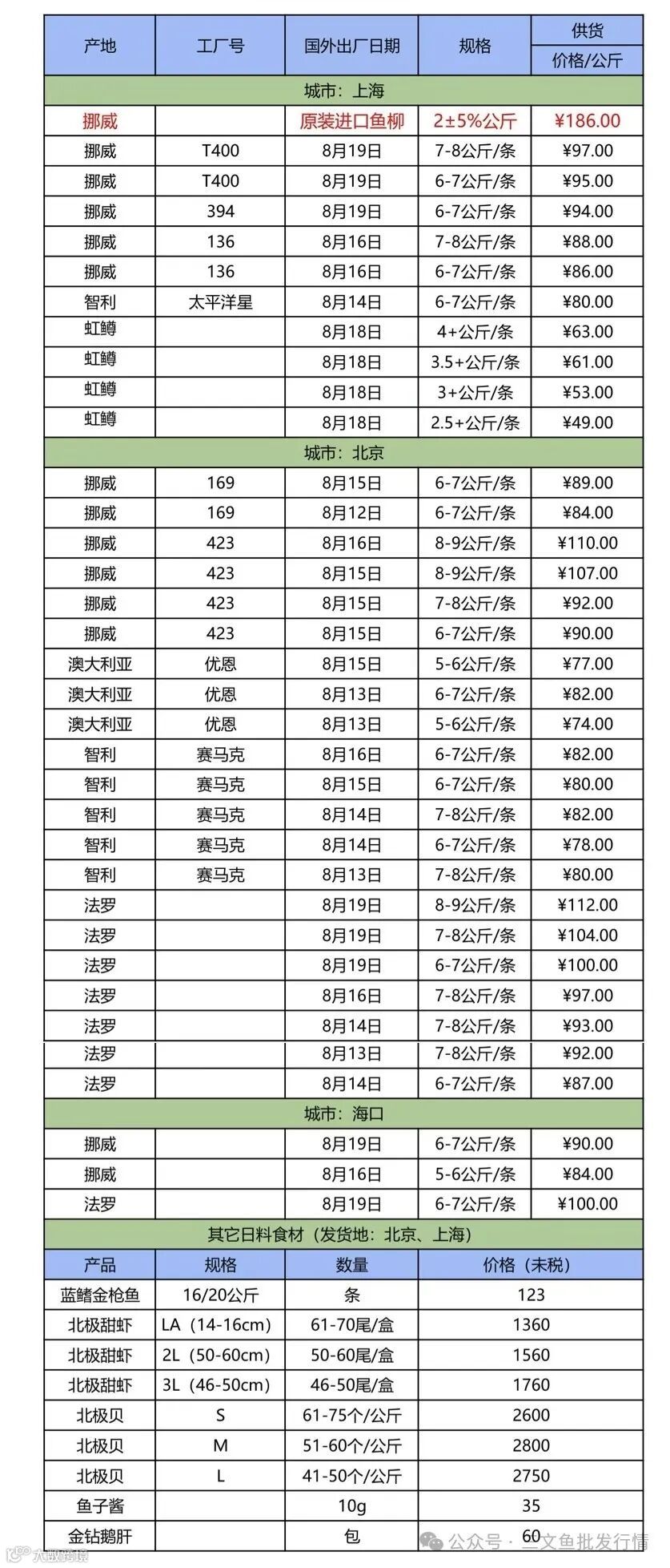 6、欢迎关注[三文鱼批发行情],每天更新当天市场价格,及时分享市场各大重要资讯。