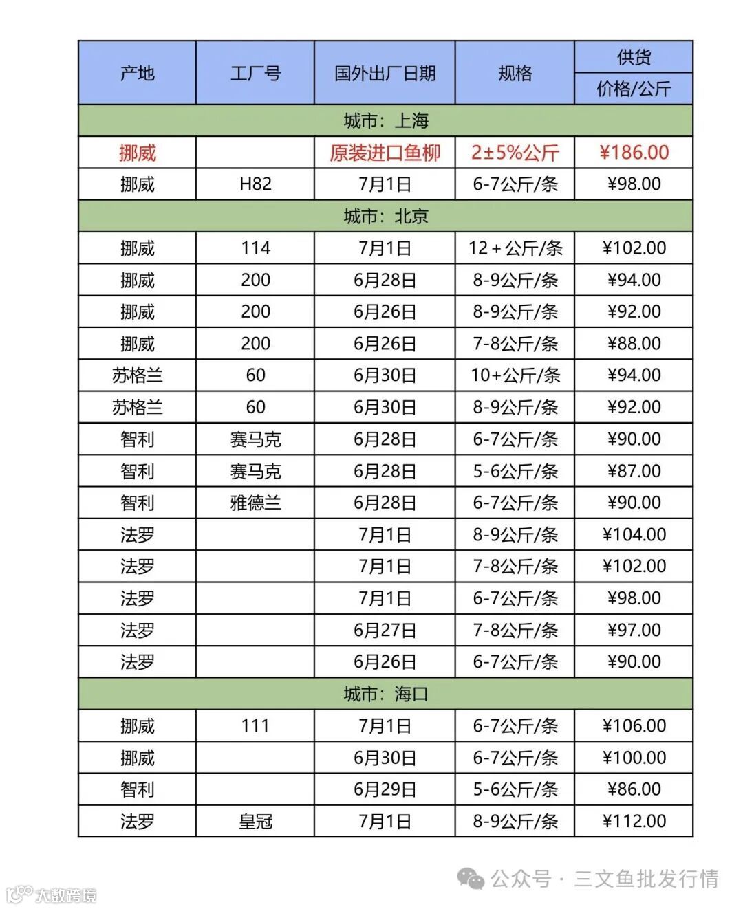 6、欢迎关注[三文鱼批发行情],每天更新当天市场价格,及时分享市场各大重要资讯。