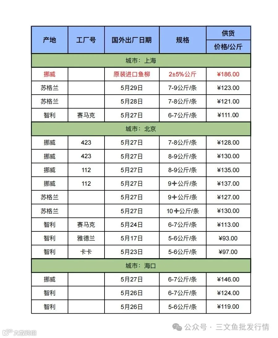 5、欢迎关注[三文鱼批发行情],每天更新当天市场价格,及时分享市场各大重要资讯。