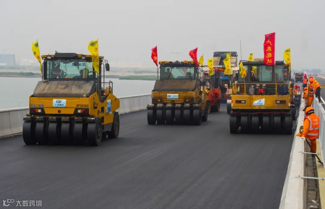 海陵岛大桥桥面沥青摊铺工作的顺利完成,标志着该工程建设已经进入最后的收尾阶段,为年底建成通车迈出了坚实的一步。