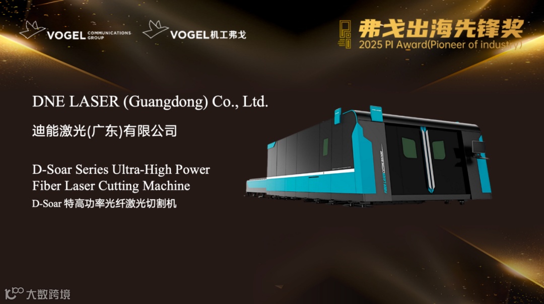 “2025年9月22日,作为德国汉诺威EMO 机床展首日的重磅活动,由北京机工弗戈和德国弗戈传播集团共同举办的“弗戈出海先锋奖颁奖典礼”在汉诺威展览中心隆重举行,该奖项旨在表彰在出海过程中表现卓越的中国企业。来自DNE LASER(迪能激光)的D-SOAR系列特高功率光纤激光切割机凭借其卓越的技术创新和市场表现,荣获这一颇具分量的国际奖项。这不仅是对D-SOAR系列特高功率光纤激光切割机产品本身的认可,更是对中国智造在全球市场上日益增强的影响力的一种肯定。D-SOAR系列特高功率光纤激光切割机能够在32家参评企业中脱颖而出,与该产品在稳定性方面的卓越表现,以及其为客户创造显著经济效益的能力密不可分。”