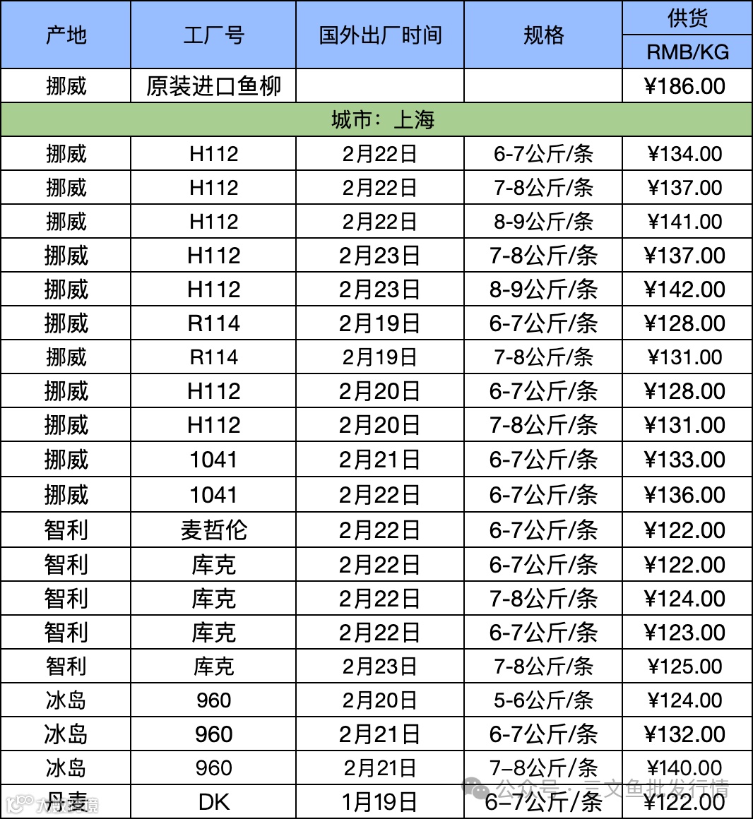 2月27日三文鱼批发行情(上海)