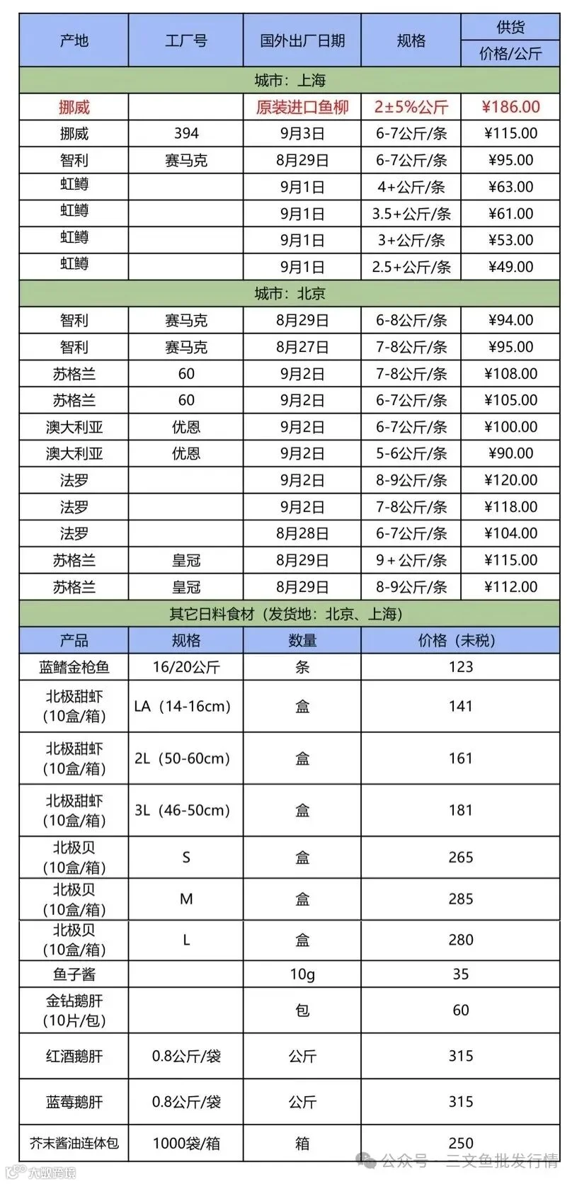 9月6日三文鱼批发行情(上海|北京) 三文鱼批发行情